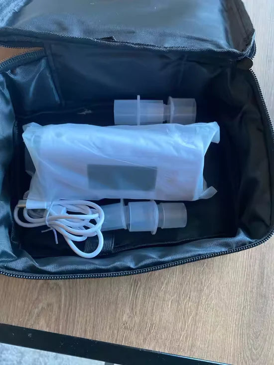 Absolutely — it includes universal adapters designed to connect with all major CPAP brands (ResMed, Philips Respironics, Fisher & Paykel, and more). The sanitizing bag easily fits a mask, tubing, and water chamber together.