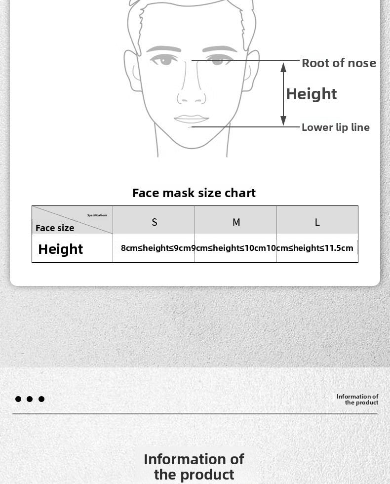 - Small (S): Ideal for petite faces or users who prefer a snug fit. Provides secure coverage for smaller nose and mouth dimensions.